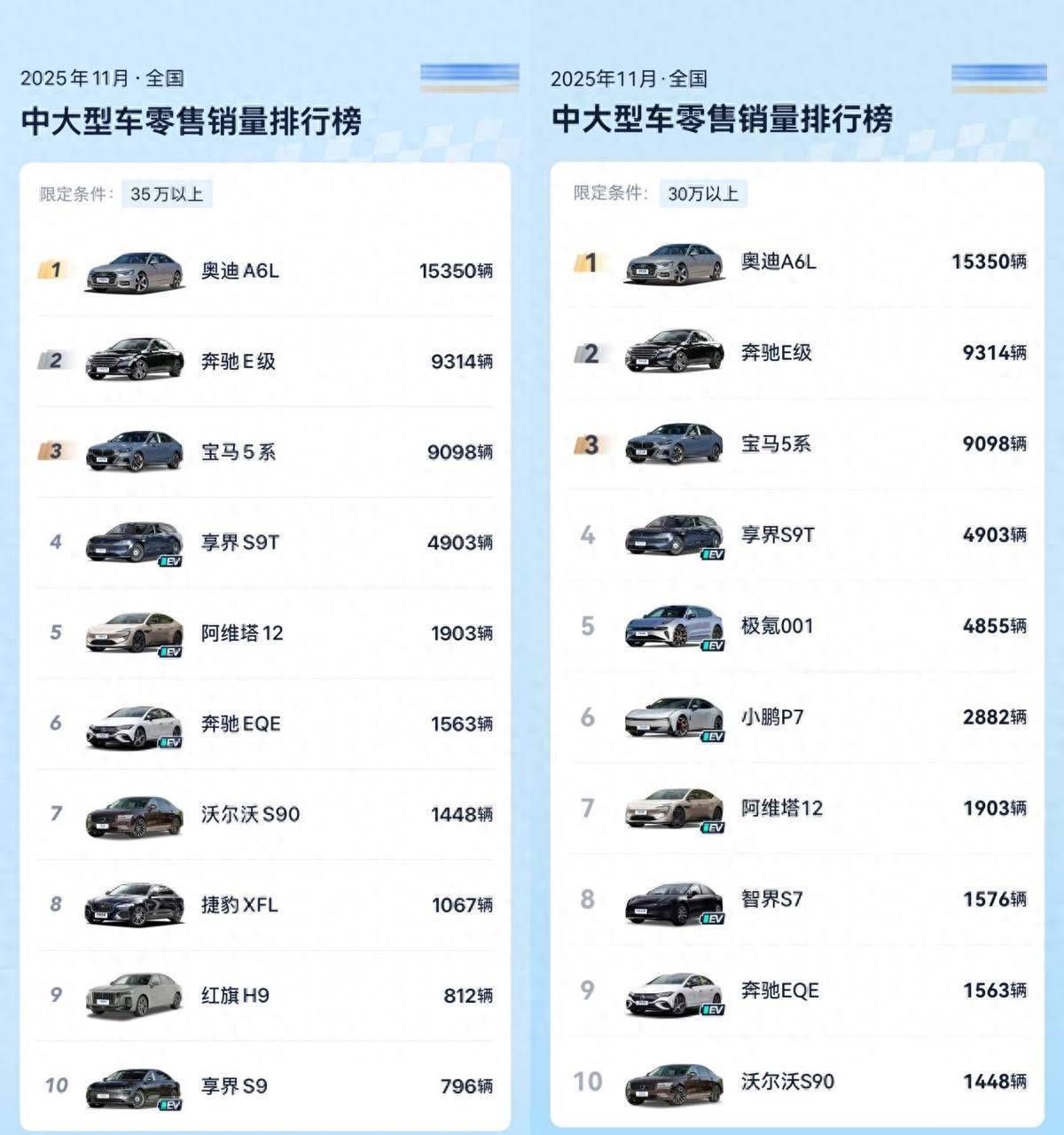 近日,11月汽车品牌销量公布,鸿蒙智行享界轿旅双子星享界S9T、享界S9持续发力,在中大型车豪华轿车零售销量排名中,享界品牌紧随BBA,跻身前四。